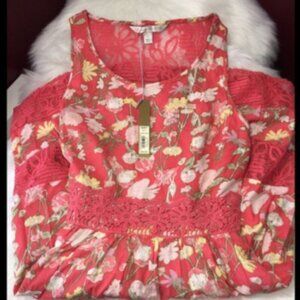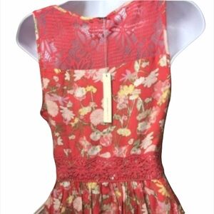 LC Lauren Conrad Womens Orange Floral Sleeveless Lace Sundress Dress Sz 2 NWT
