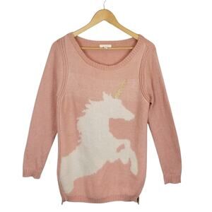 LC Lauren Conrad Women's Pink Unicorn Long Sleeve Sweater Size Medium