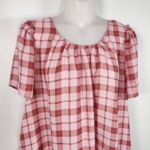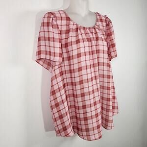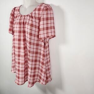 LC Lauren Conrad Womens Plaid Top XL Ruffle Flutter Sleeve Tie Neck Lightweight