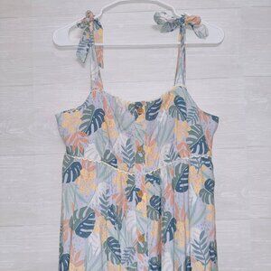LC Lauren Conrad Women's Sleeveless Floral Print Smocked Button Front Long Dress