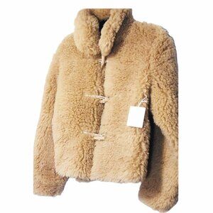 LC Lauren Conrad Womens Tan Faux Shearling Toggle Teddy Bear Jacket Sz L NWT