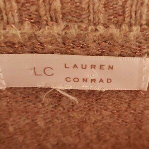 Lauren Conrad women’s tan pale pink heart shimmer crew neck sweater large. . Gently used condition, size tag is missing (see measurements for sizing) Measurements are: 27” sleeve (measured from neckline), 28” from shoulder to hem, and 20” from armpit to armpit.