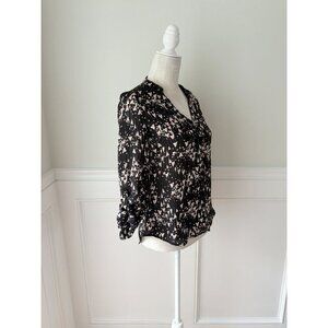 LC Lauren Conrad XS Black & Pink Heart Print Popover Blouse
