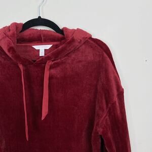 LC Lauren Conrad Faux Fur Hoodie Sweatshirt Red Cozy Lounge XSmall XS Womens