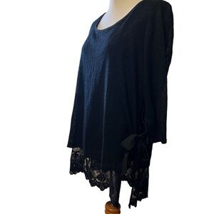 LC Lauren Conrad, black tunic, length top with side, ties and lace bottom, med