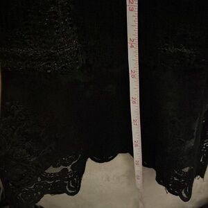 Black Lauren Conrad tunic length top that has so many special features. The body is fully lined but the sleeves are not, this is 78% polyester and 22% rayon. Scoopneck top, ties at sides, and a lace bottom. My pictures do not do this justice at all. Being black, it’s hard to show the detailing. In perfect condition, only worn a couple of times.