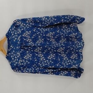 LC Lauren Conrad blue heart print 3/4 button down blouse size medium long sleeve