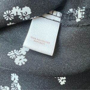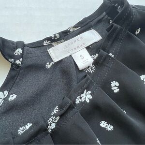 Lauren Conrad floral blouse size small. Black with white floral pattern. Sleeveless and collarless blouse with a tie back. Round gathered neckline. Round hemline.