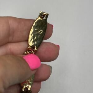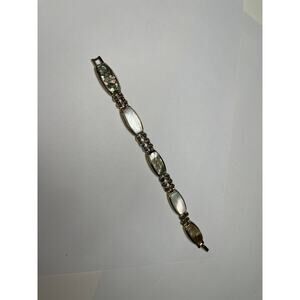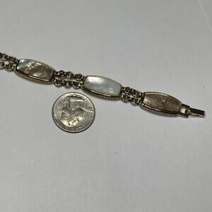 Lauren Conrad LC bracelet costume signed jewelry gold tone with abalone pearl mother of pearl MOP inserts, 7” in length.