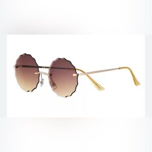 LC Lauren Conrad small Currents rippled ruffled edge Round brown gradient tinted lens frameless Sunglasses new