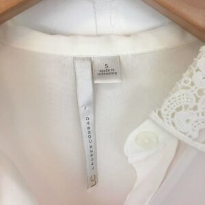 Size Small. LC Lauren Conrad Striped Sheer Button Up Blouse with lace collar. Has a few minor stains.