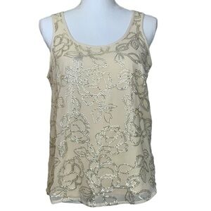 LC Lauren Conrad Sequined Tank Top Semi Sheer Shell and with a stretchy bond con lining Tastefully embellished sparkling Woman’s Size S