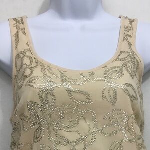 LC Lauren Tank Top Scoop Neck Sparkling Sequined Embellished Cream Blush Tank S