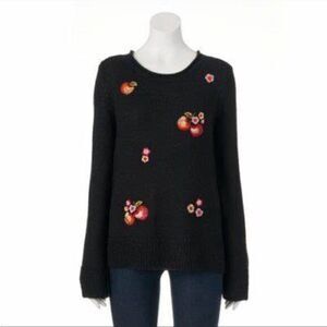 Enjoy fabulous fairytale style in this charming women's sweater from LC Lauren Conrad's Disney Snow White collection, featuring sequined apple embroidery.