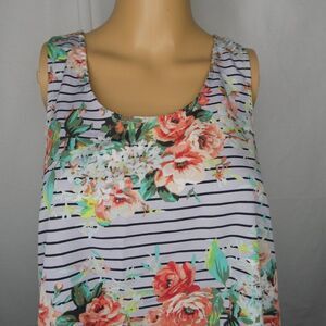 LC Lauren Conrad Floral Striped Mesh Panel Racerback Tank Top Sleeveless Blouse