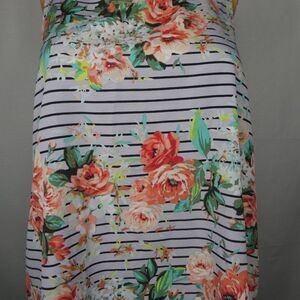 Beautiful racerback tank with all-over floral striped print, and mesh detailing between the shoulders. In excellent condition.