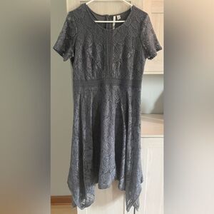 LC Lauren Conrad Womens Gray Asymmetric Round Neck Fit And Flare Dress - Size 14