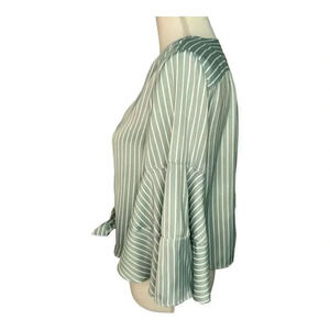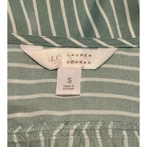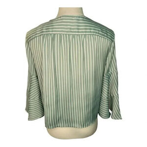 LC Lauren Conrad Women’s Large Green & White Stripe Crop Flutter Sleeve Tied Top