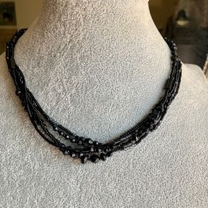 LC Liz Claiborne Jet Black Beaded 5 Strand Choker