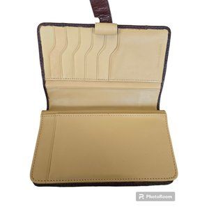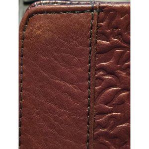LC Liz Claiborne Leather Co Wallet Tooled Brown Soft Monogram Initial Gold Snap
