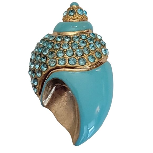 LC Liz Claiborne Teal, Robins Egg Enamel Seashell Blue Rhinestone Brooch, M732