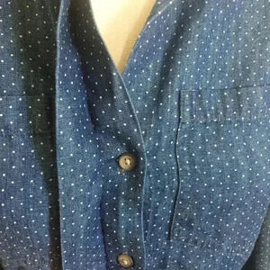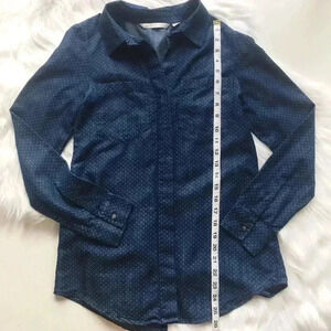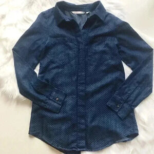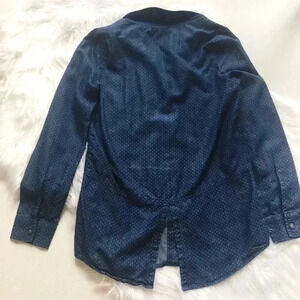 Lauren Conrad, LC, chambray polka dot button down shirt with two front pockets. Excellent condition!