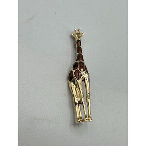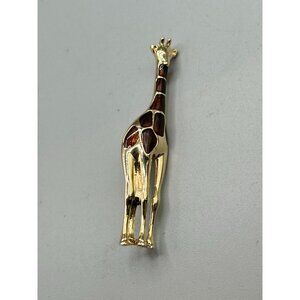 LC Signed Liz Claiborne Giraffe Pin Brooch Gold Tone & Brown Enamel Animal Pin