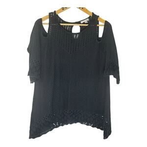 LC Women’s Cold Shoulder Crochet Sweater shark Bite Hem & Keyhole Back XL