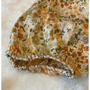 LC XL Ivory Brown Green Gold Metallic Ditsy Floral Long Sleeve Button Front Tie