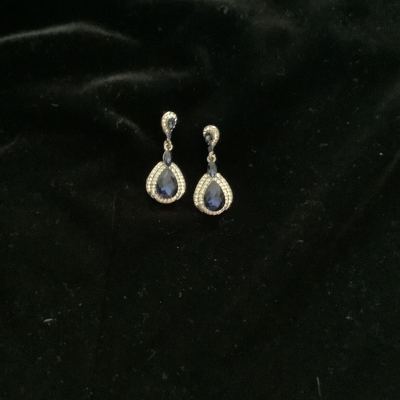 Lab created sapphire and Diamond dangle earrings on silver plated backing. They look stunning on and great for any formal function. Perfect for the holidays 🎄🍾