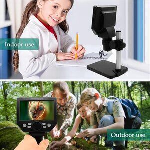🧿🔍【Adjustable Brightness Fill Light & Easy to Focus】This digital usb microscope is equipped with 8 bright LED lamp beads,with a continuous service life of 100000 hours.When the light source is insufficient, the light scroll wheel beside the screen can be adjusted to control the intensity of the LED supply light and optimize the test results. Adjusting the object close to the lens, then you can view the specimens on the 4.3 inch screen clearly by rotating the focus wheel slowly.