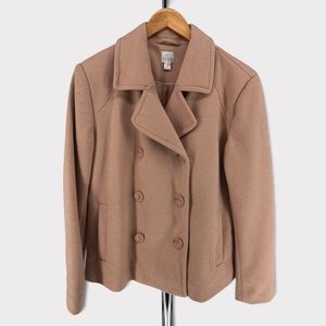 LC LAUREN CONRAD Blush Pink/Tan bow-back wool-blend peacoat will add chic style to your winter wardrobe! (The color is tan with a blush pink undertone)