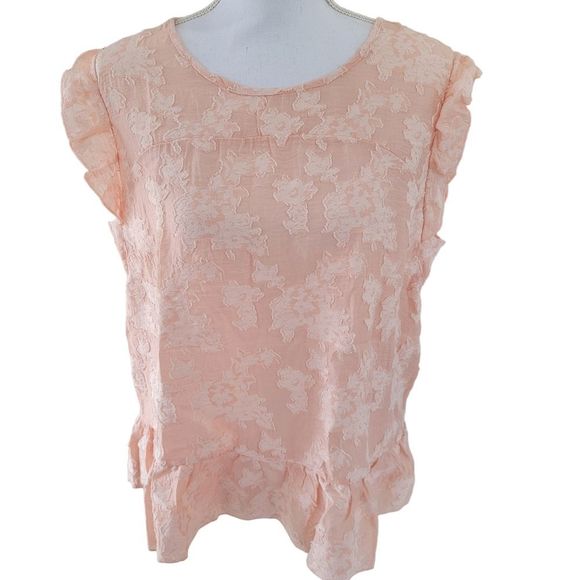LC Lauren Conrad Floral Jacquard Shell XL Blouse Top Tank Pink Coral Peplum Hem