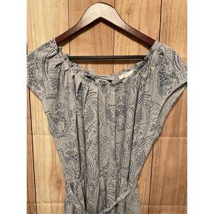 LC Lauren Conrad Large Summer Pleat Neck Paisley Blue grey Fit & Flare Dress