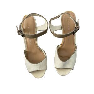 LC Lauren Conrad Pinstripe Canvas 5in Wedge High Heel Shoes Size 6