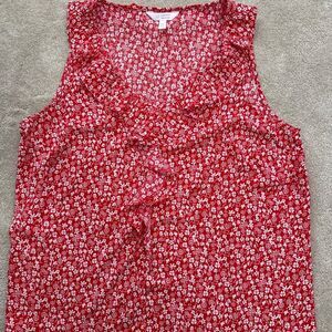 LC Lauren Conrad Red Floral Ruffle Blouse
