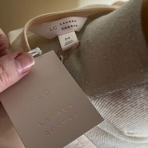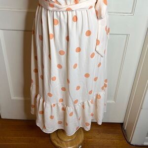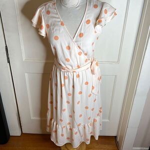 LC Lauren Conrad Women's Flutter Sleeve Polka Dot Midi Dress Beige Sz Medium NWT