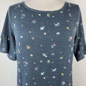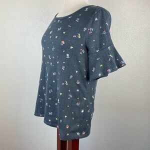 Cute top featuring a flora and fruit pattern measuring 17 inches armpit to armpit laying flat and 24 inches in length from shoulder to hem.