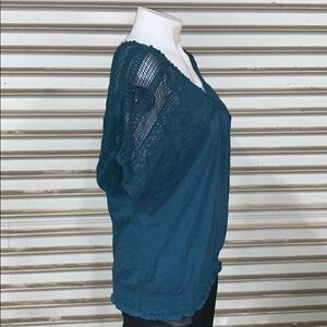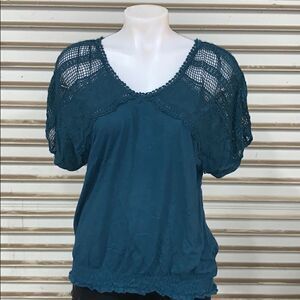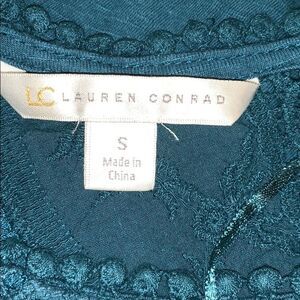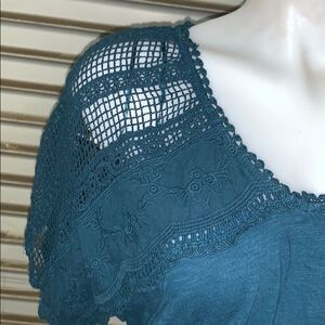 LC Lauren Conrad 100% teal cotton top lace accent