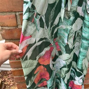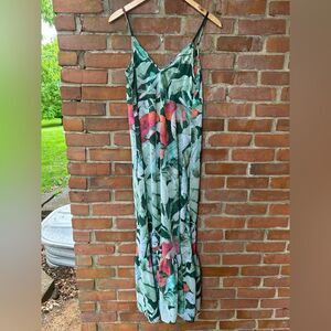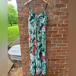 Lauren Conrad Green Leaf Print Sheer Maxi Dress/ cover up. Size small. Excellent condition. Plunge neckline and braided strap detail.