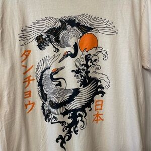 LCM Japan Graphic Crane Tee Tan Short Sleeve T-Shirt Size M