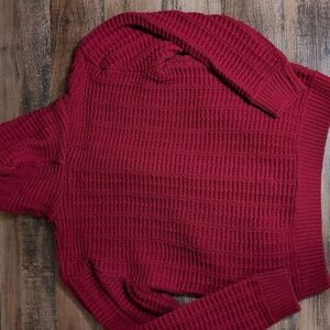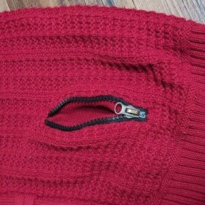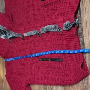 LCR Black Edition Knit Full Zip Sweater in Red Faux Fur Hood Lining