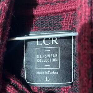 Elevate your style with this LCR Menswear cowl neck knit pullover sweater in a vibrant red! This sweater is in women's size large and offers a unique blend of comfort and fashion.