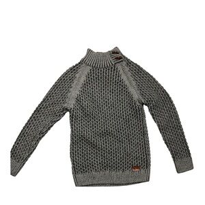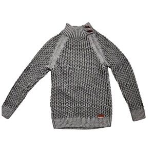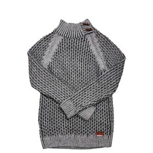 Elevate your wardrobe with this mens gray knit sweater. Featuring a unique button detail, this sweater is perfect for any occasion. Stay cozy and stylish all season long.