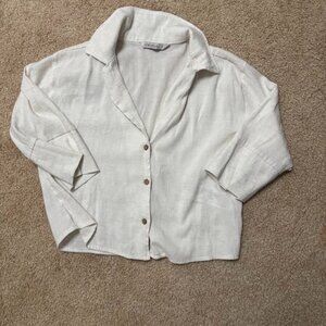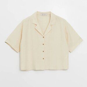 LCW Vision Plain Short Sleeve Linen Blend Women's Shirt - super cute shirt from Greek designer LC Waikiki in color "ecru". Good, lightly worn condition with no flaws. Information below is from the LC Waikiki website: