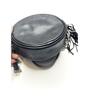 LD Circular Round Vegan Leather Crossbody Purse With Chain StrapTassle