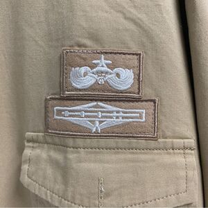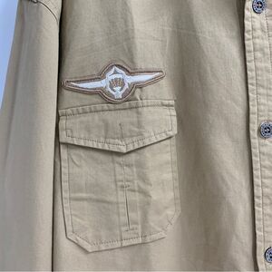 LD KASILD Size 5 XL Button Front L/S Mustard Yellow Military Patch Shirt