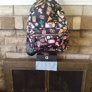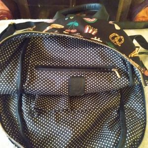 Small LD brand backpack (exterior black) (interior small polka dot black &white)