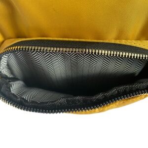 Great mustard yellow color with black and white zig-zag fabric on interior