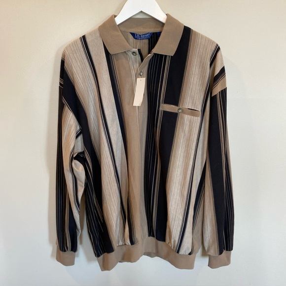 LD Sport International Long Sleeve Polo NWT Large Striped Vintage Preppy Retro